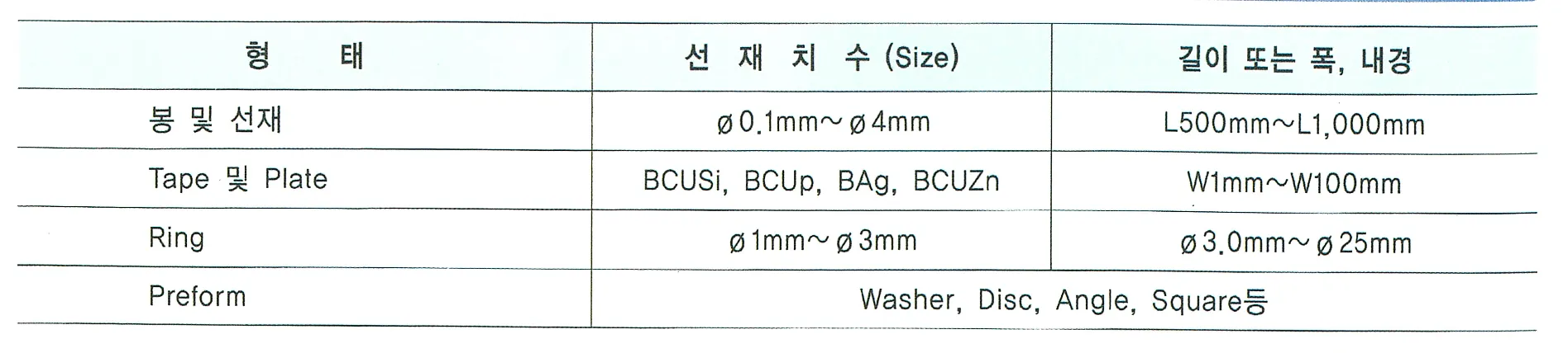 저온 은합금용접재 (Silver Brazing Filler Metals)