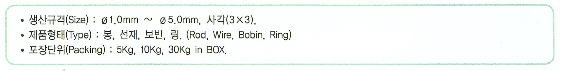 • 은합량이 많은 것은 고가이므로 알맞는 규격의 용접재를 선택하여 사용하십시오.