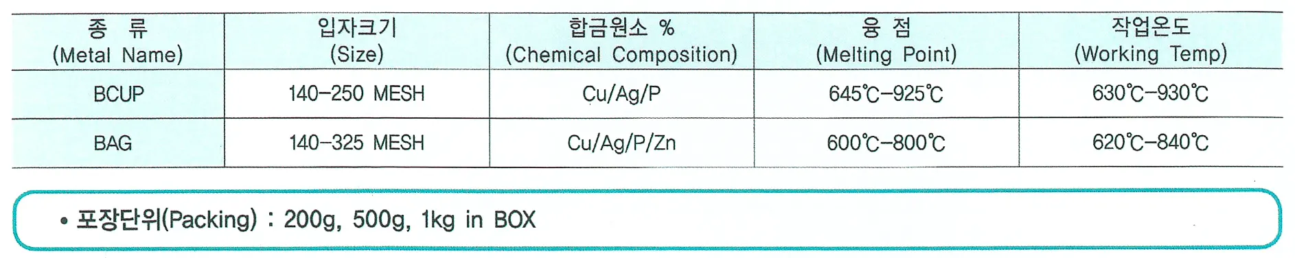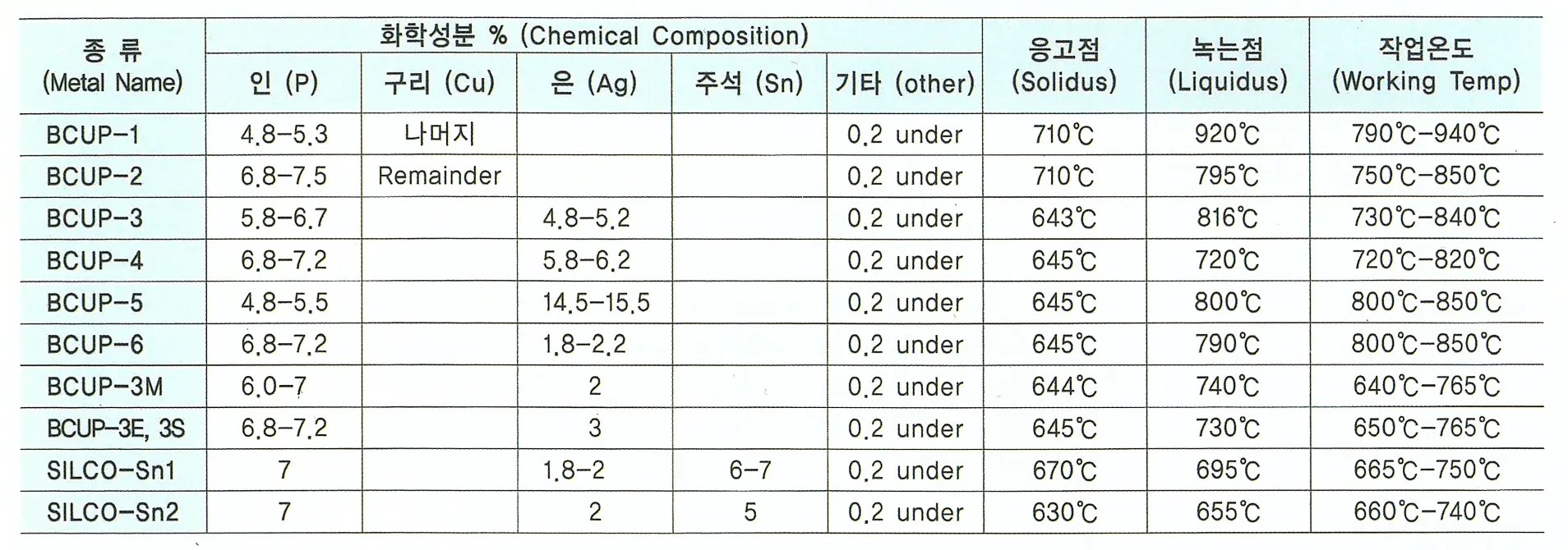 •용접시 후락스는 SILCO FLUX-B(고온용)을사용하여주십시오. TIG, MIG용접불가(BcU, Bcusn은가능)